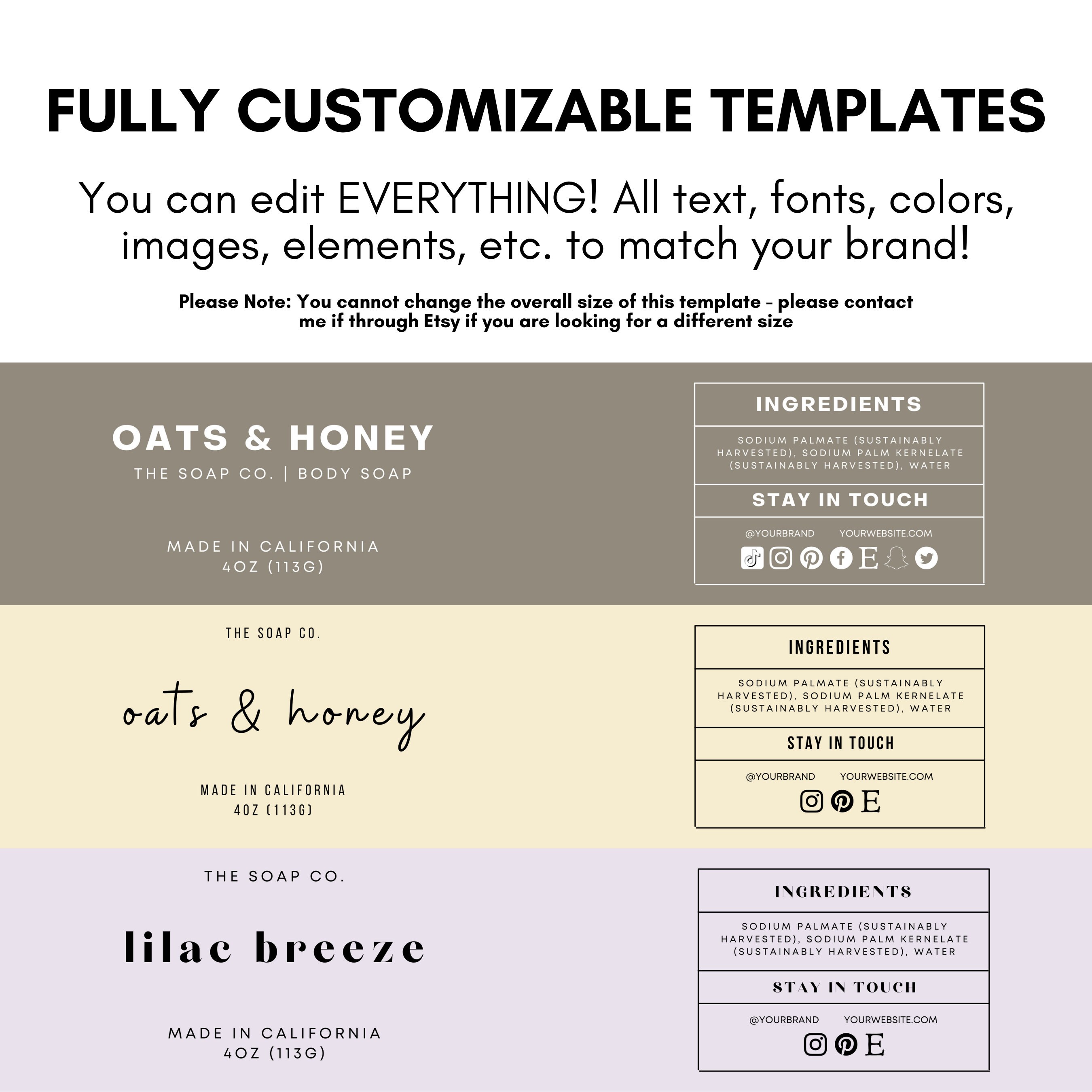 Soap Label Template - Illustrator, InDesign, Word, Apple Pages, PSD ... Jun 6, 2020 - Make your own label for your soap brand with this free and easy to edit template. With high-quality and printable citrus themes and designs, be sure catch your customer's eye. Create Personalized Labels and Stickers Online | Avery.com Step 3: Personalize your labels. For the design: Choose a pre-designed template, or a blank template to create your own from scratch. To change the design, just click and delete the existing graphic or background you want to change, then use the image options on the left of the screen to add a new graphic from the image gallery or your own files. 7+ Soap Wrapper Templates - Word, PDF, PSD, EPS Format Download | Free ... For melt and pour types of soaps, wrapping it tightly in plastic is your best option. For cold process soaps, it is highly recommended to highlight its natural design, so exposing them a bit but with a paper wrapper is fine. We have both templates for both types of wrappers in here, so take your pick among our countless designs.