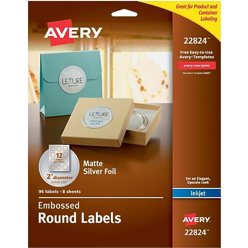 Avery Easy Peel Embossed Matte Silver Foil Round Labels, 2" Diameter, Pack of 96 (22824) | Staples